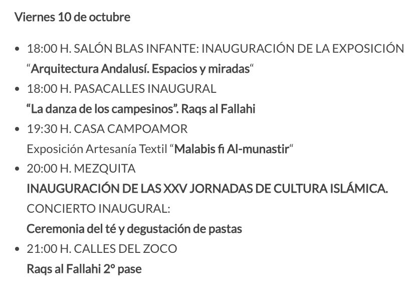 Programación Jornadas de Cultura Islámica 10 de octubre