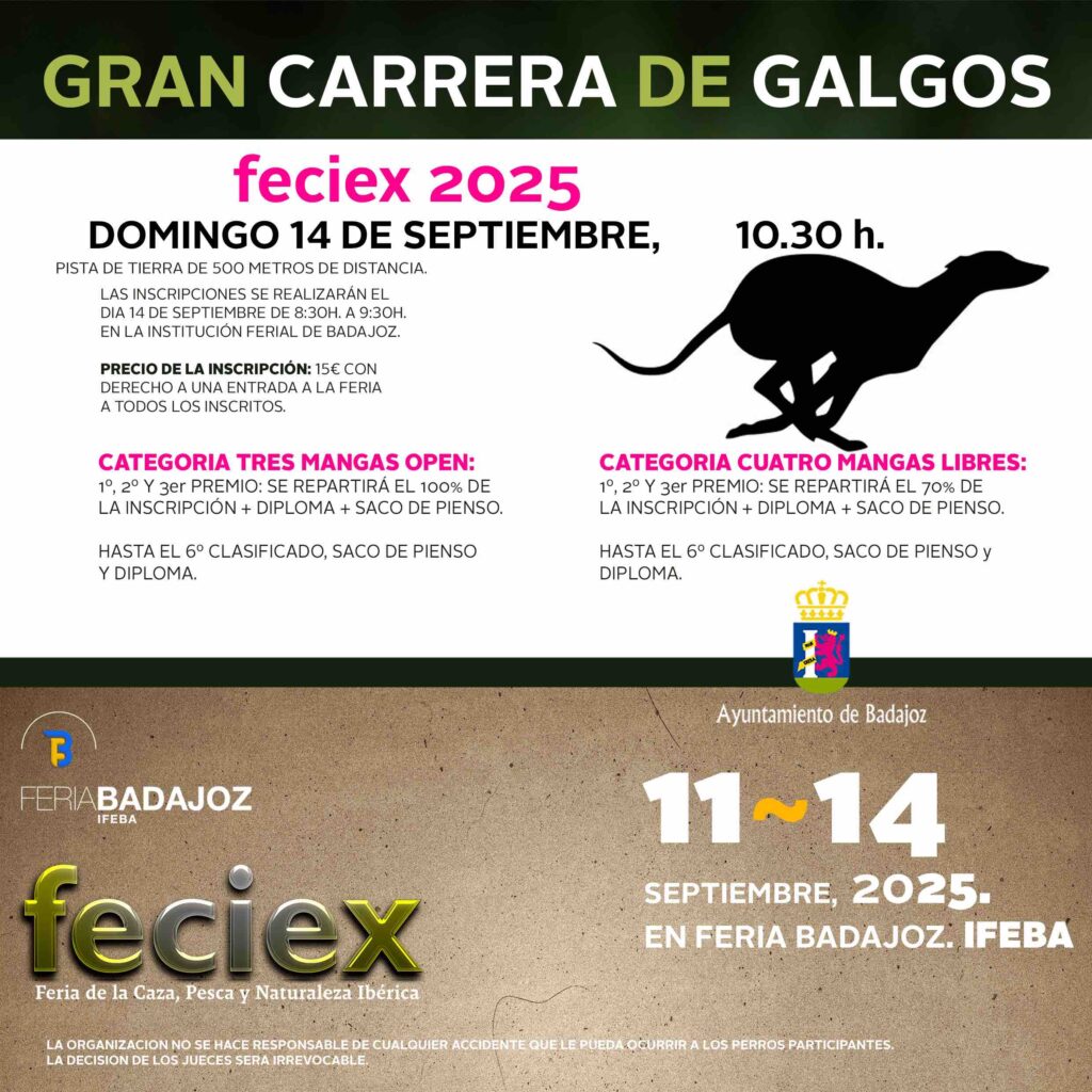 FECIEX Feria de la Caza, Pesca y Naturaleza Ibérica – Badajoz se viene celebrando desde los años 90 del siglo XX en IFEBA – Feria de Badajoz, a lo largo del mes de septiembre.