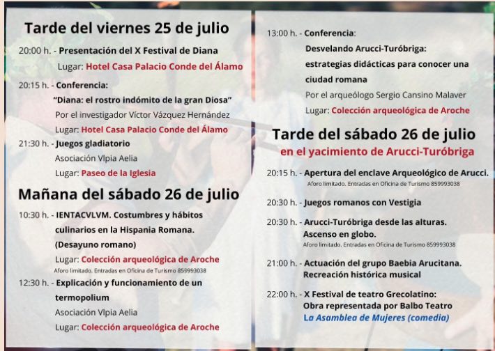 - Aquí cartel y programación del Festival de Diana – Jornadas de Cultura Romana Arucci Turóbriga de Aroche 2025.